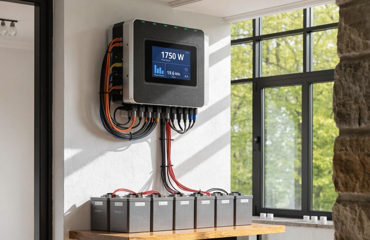 Потужність інвертора (кВА або кВт). Визначає, яке сумарне навантаження може обслуговувати пристрій одночасно. Для середнього будинку з котлом, холодильником, освітленням і базовою технікою достатньо 3–5 кВт. Якщо є електрична плита або кліматична система — потрібно більше.